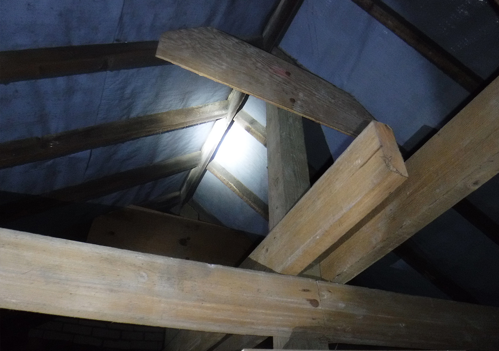 an adaptation, most likely when the original slate roof covering was replaced with concrete