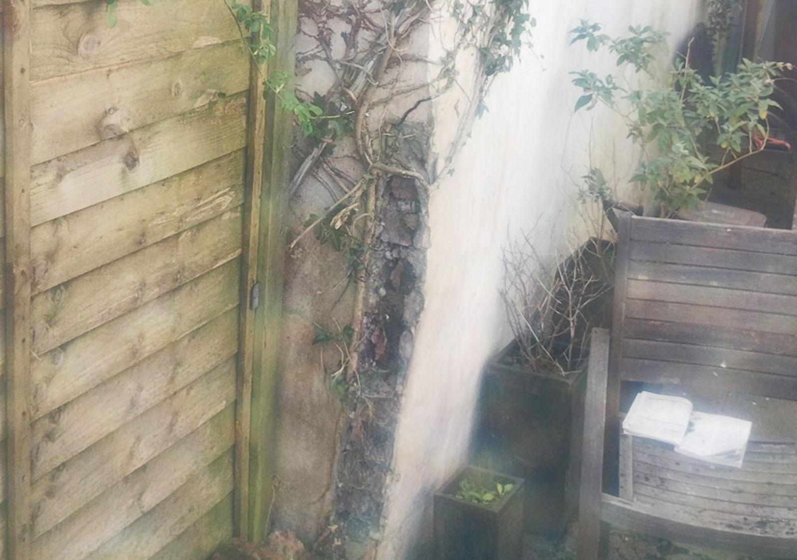 boundary wall without the brickwork being properly keyed or toothed into the original structure.