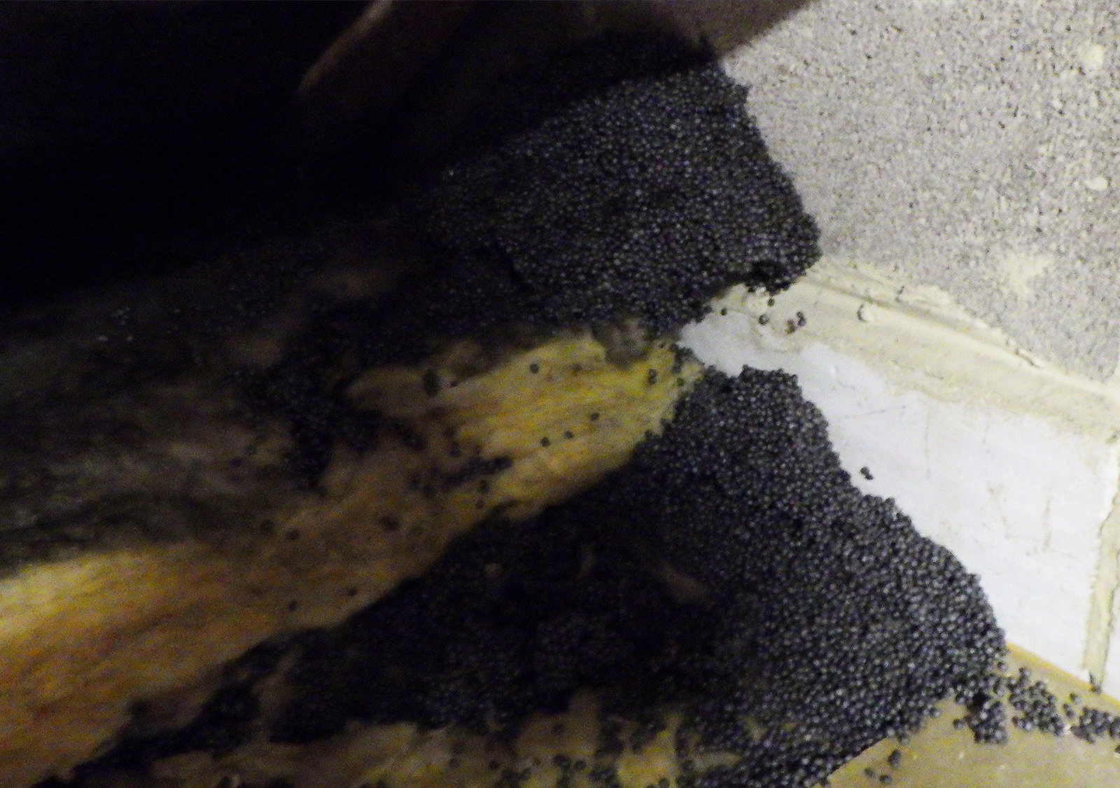 Cavity wall insulation in bead form was noted, and sample areas appeared full and dry with no signs of damp tracking. A small number of beads were observed to have escaped from the top of the cavity, likely due to an unsealed section where the installation was not fully closed off.